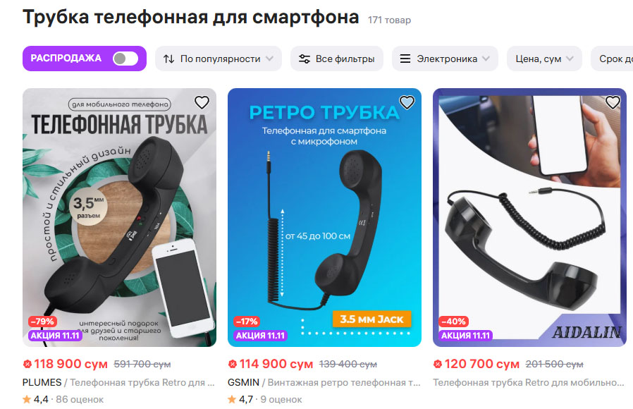 Например, яркую модель выпустила компания Native Union, вдохновившись классическими бакелитовыми телефонами 50-х годов прошлого века. На Wildberries, Ozon и AliExpress уже доступны десятки бюджетных версий. Цены стартуют от 63 000 сумов и выше — правда, доставку придётся немного подождать.