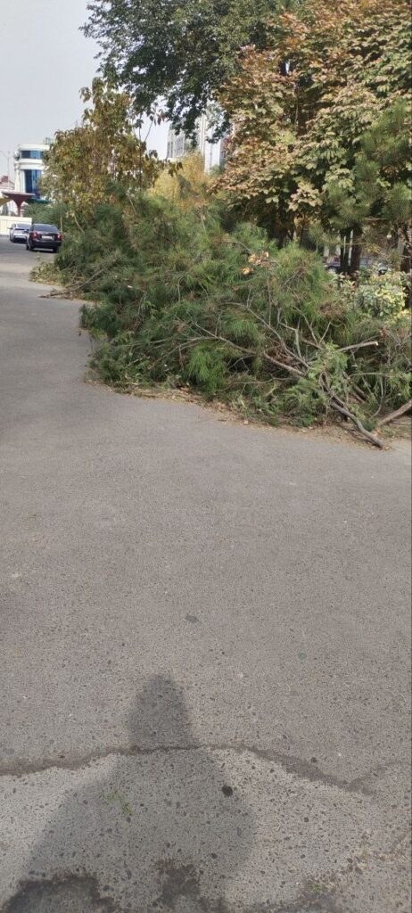 Самое поразительное — деревья срубили не какие-то «чёрные дровосеки», а сотрудники управления благоустройства, причём по официальному распоряжению высокопоставленного чиновника из столичного хокимията. Формальная причина — необходимость высадки на этом месте новых декоративных деревьев. Но зачем рубить абсолютно здоровые взрослые хвойные, чтобы вместо них посадить «декоративные» — вопрос, на который власти не дали убедительного ответа.