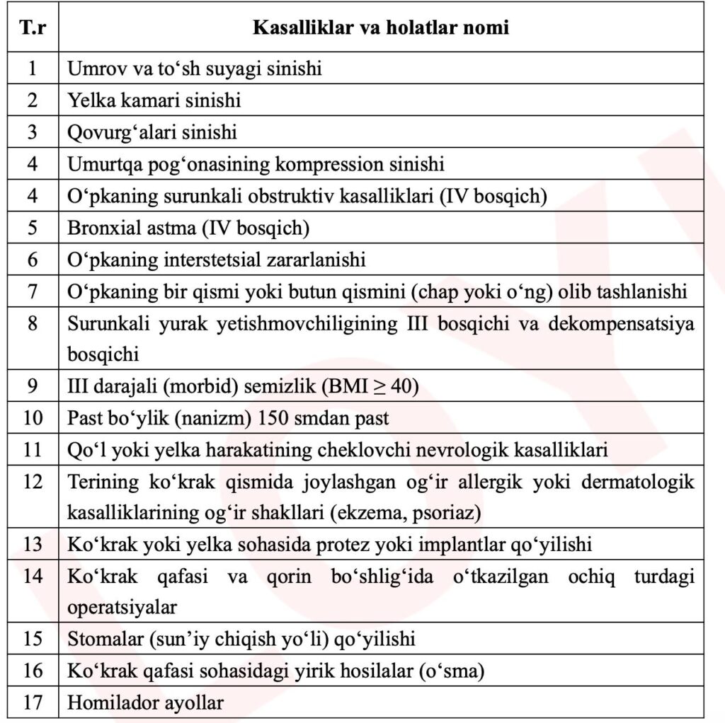 Согласно проекту, в списке 17 заболеваний и состояний, при которых ремень безопасности может быть противопоказан. Среди них — переломы костей (ключицы, рёбер, позвоночника), тяжёлые формы астмы, хроническая сердечная недостаточность, ожирение, беременность, а также серьёзные дерматологические проблемы, наличие протезов и даже низкий рост. Полный список — на иллюстрации к статье.