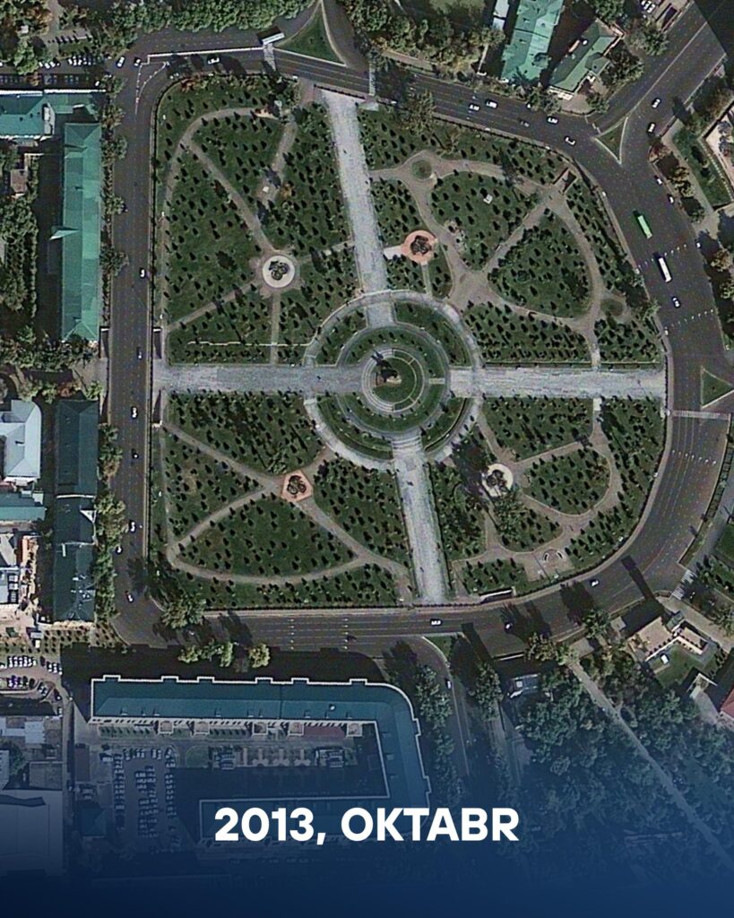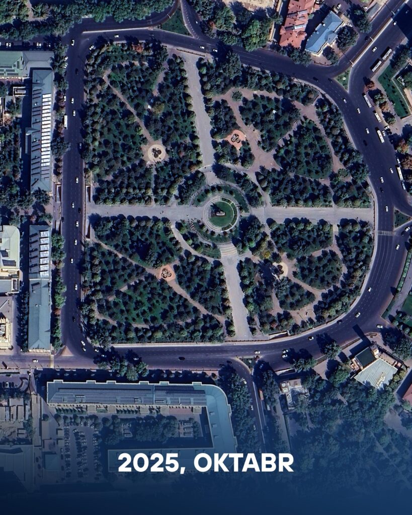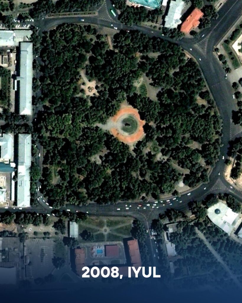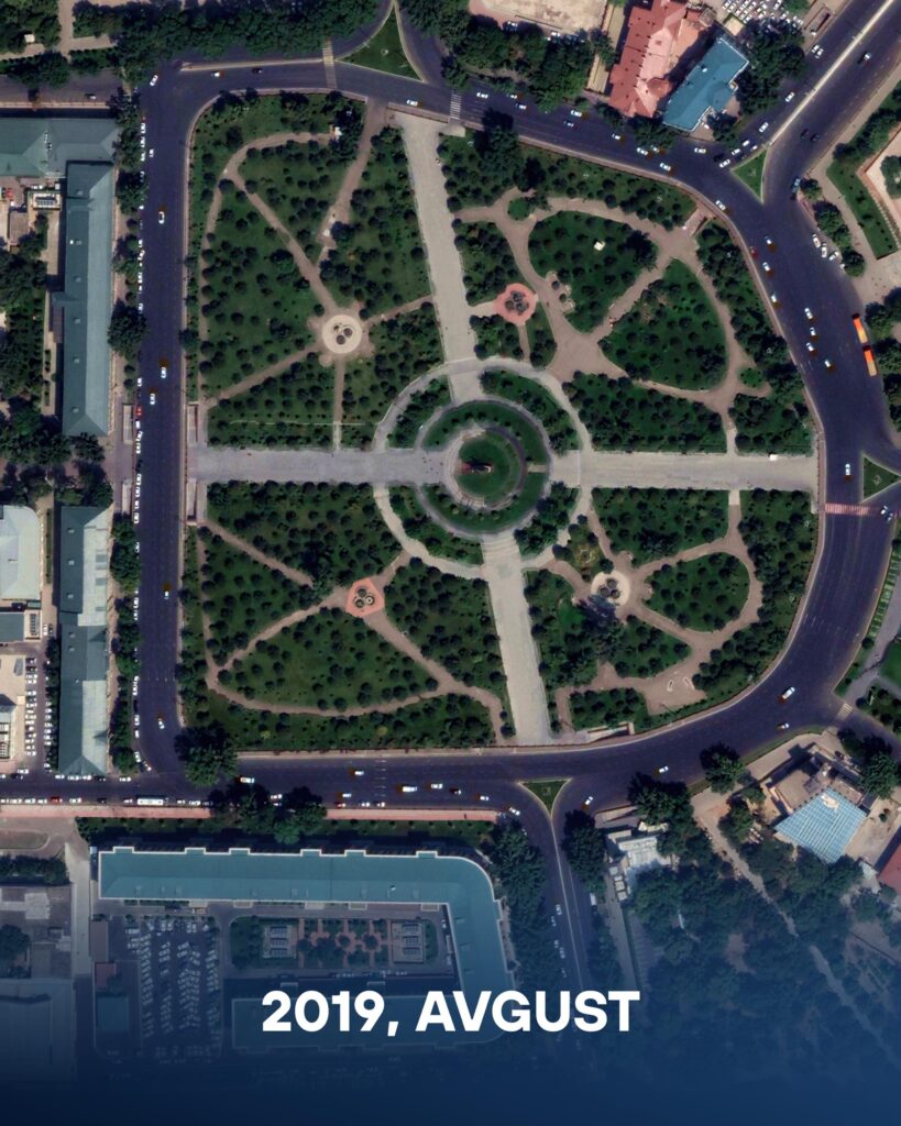Vaib.uz (Узбекистан. 4 декабря). Агентство «Узкосмос» опубликовало интересные фотографии самого известного сквера Ташкента, на которых отчётливо видно, как в 2009 году эта зелёная зона была фактически уничтожена. Теперь, спустя 16 лет, на этих снимках можно заметить, что территория начинает понемногу «оживать». Но до того, как выглядел сквер раньше, по-прежнему очень далеко.
