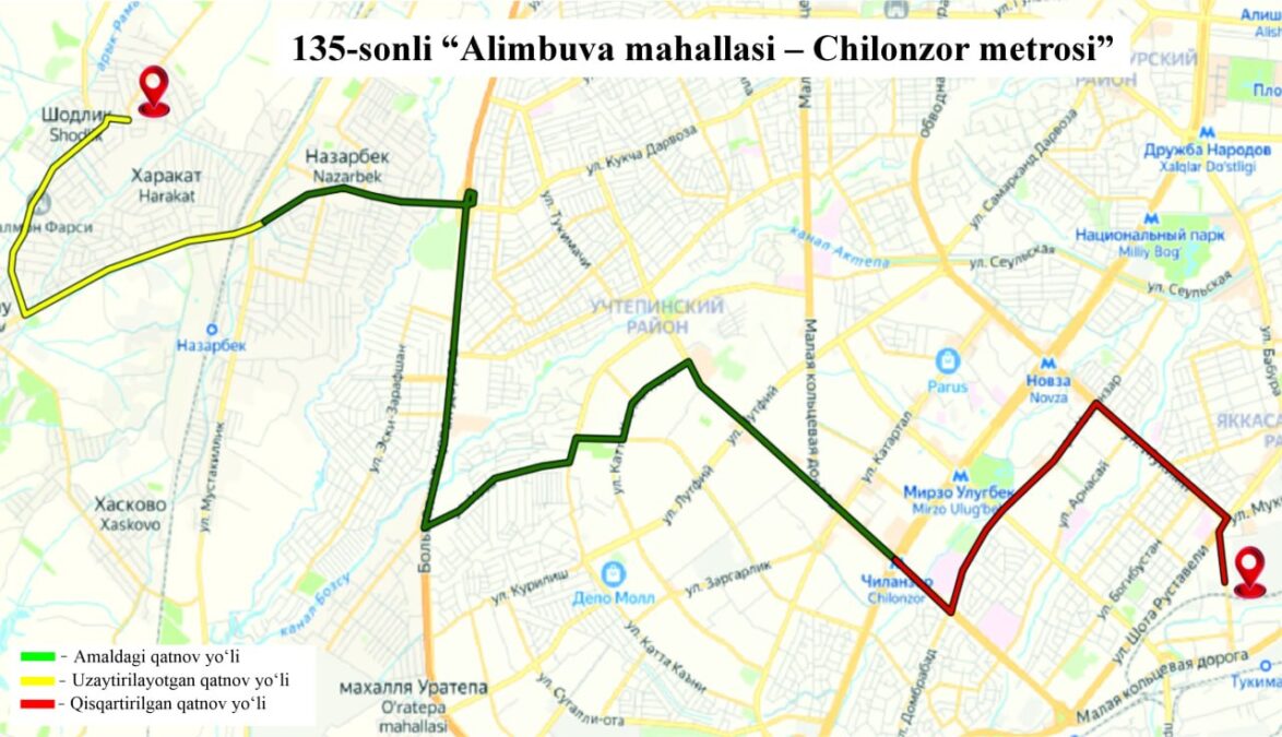 Но есть и «но». С другой стороны, маршрут решили сократить – вместо Южного вокзала он теперь будет доезжать только до станции метро «Чиланзар».